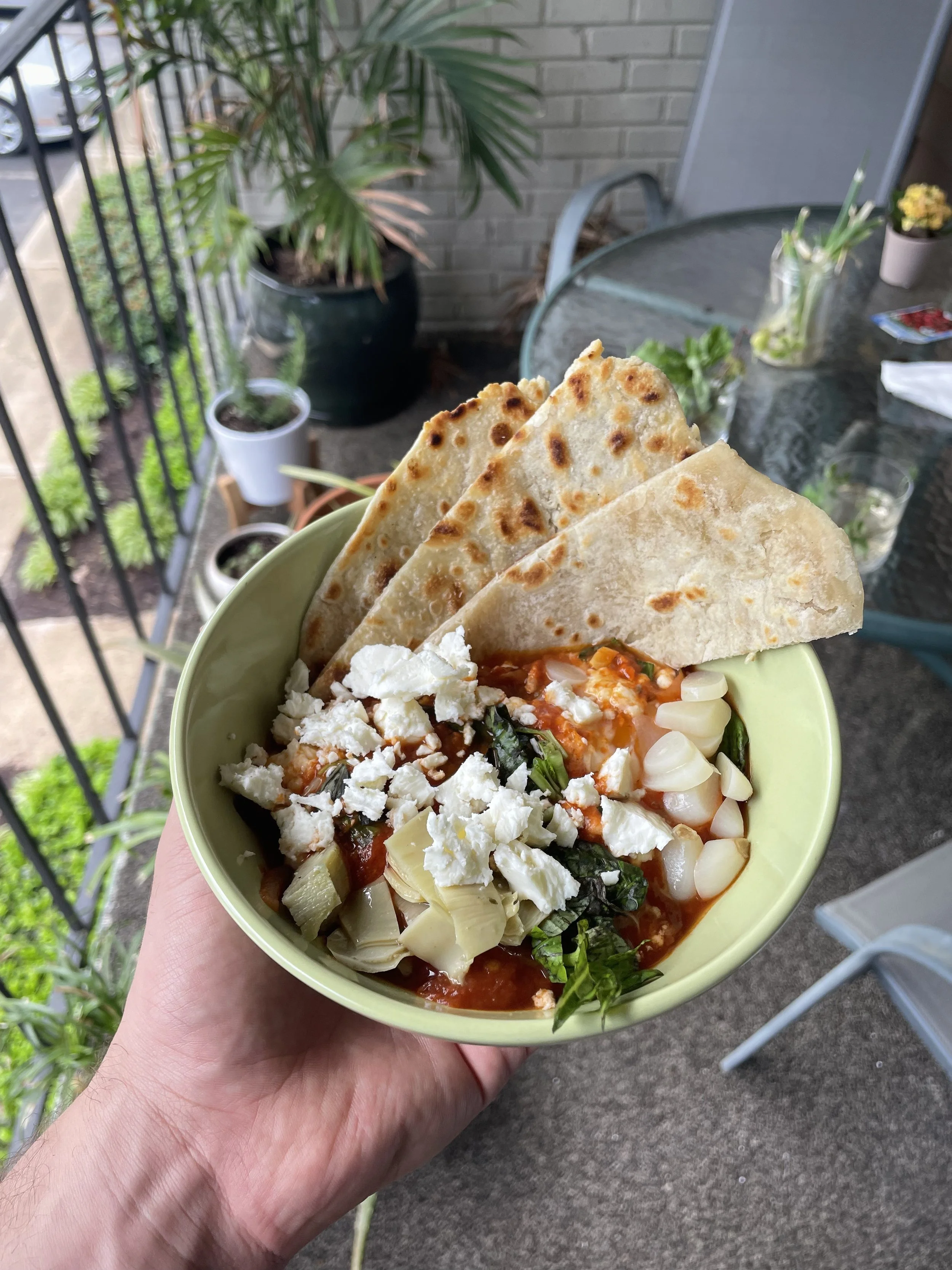Tomato soup food photography, Basil, cream, black salt